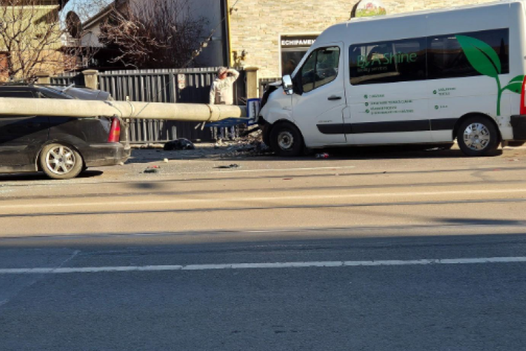 Un accident rutier a avut loc ieri după-amiază, pe strada Oașului din Cluj-Napoca! Un stâlp de electricitate a fost distrus complet iar două persoane au fost transportate la spital.