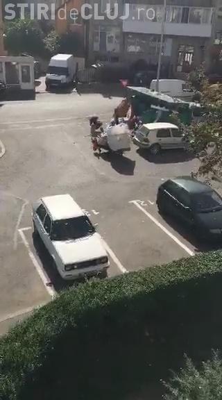 Un caz ne-a fost semnalat de un clujean pe Aleea Videaru. Containerele au fost golite, iar mai multe persoane selectau deșeurile pentru a aduna PET -urile.
