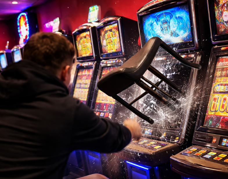 Clujean cu nervii „explodați” la păcănele: A aruncat cu scaunele în aparatele de jocuri, după ce a pierdut toți banii. A făcut praf aparatele. De două ori!