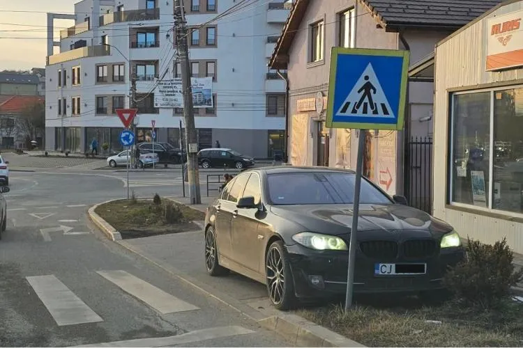 Polițiștii locali din Cluj nu l-au iertat! Amendă usturătoare pentru un șmecher cu BMW care s-a parcat lângă o trecere de pietoni