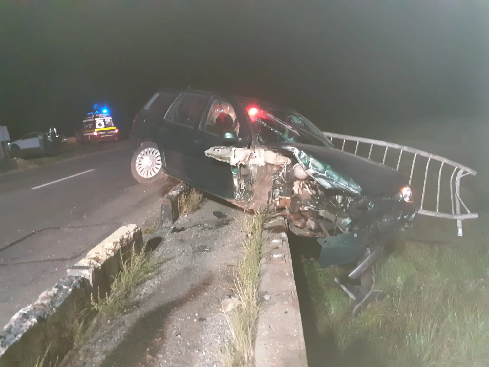 Ajunşi la fața locului, polițiștii au identificat mașina imobilizată pe un pod aflat la pe DN1E60, fiind izbită de balustradele metalice ale podului.