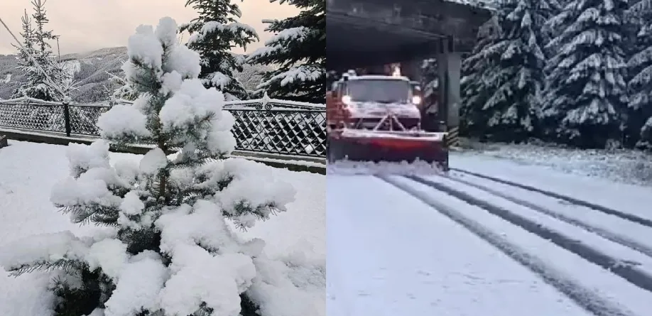 A căzut prima zăpadă în România! ,,Cei care vor să circule în zonă să fie pregătiți să conducă în condiții de iarnă” - VIDEO