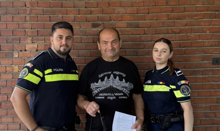 „Gândurile noastre bune se îndreaptă azi către domnul din imagine, care, în această dimineață, a predat polițiștilor din municipiul Sebeș o geantă în care se afla suma de aproximativ 65.000 de lei, în bancnote de euro și lire turcești, precum și alte bunuri.