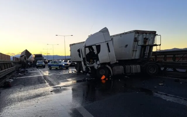 În accident au fost implicate un TIR și două camionete, nouă persoane fiind evaluate de medici.