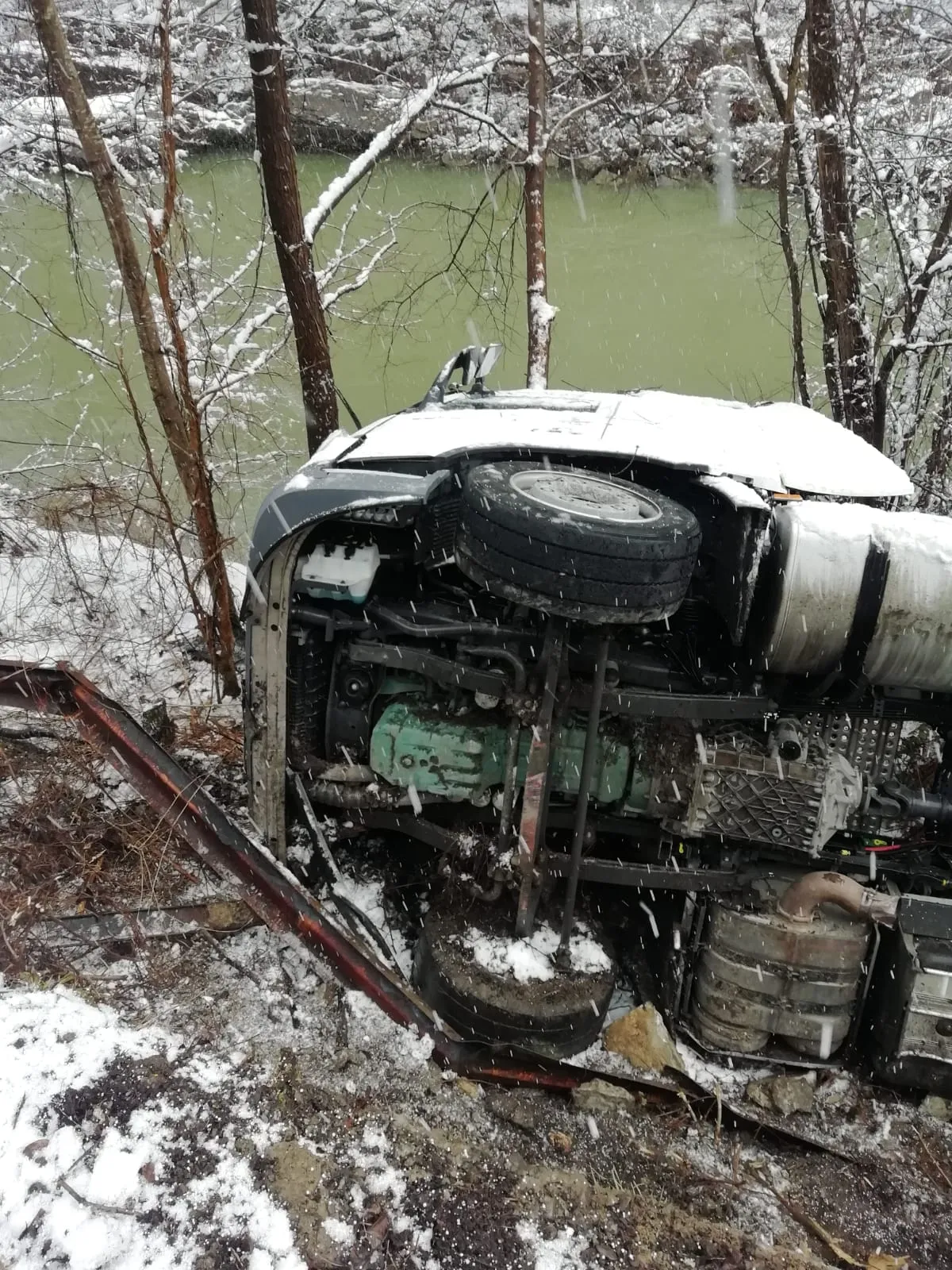 Accident grav în Alba, pe DN 75, la Sălciua. Un TIR a riscă să cadă în Arieș - FOTO