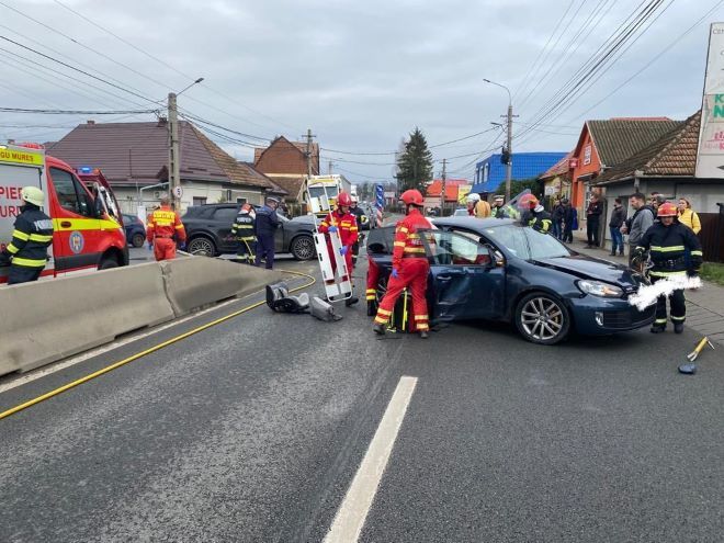 Accident grav în Mureș! O persoană a rămas încarcerată, iar alte două victime, dintre care un minor, au fost transportate la spital