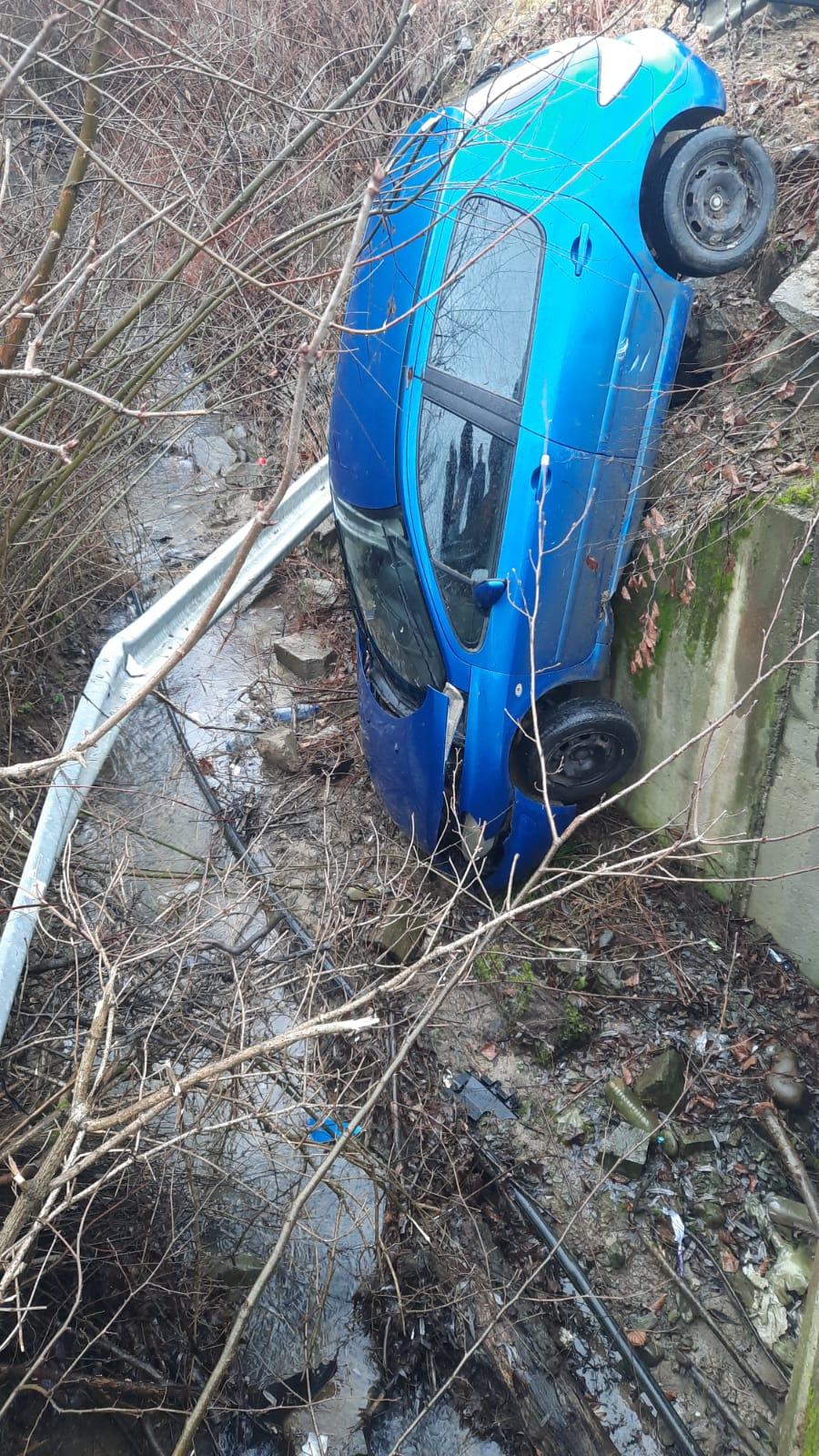 Din primele informații, un autoturism s-a răsturnat în afara părții carosabile, ajungând într-o râpă. În mașină se aflau patru persoane, doi copii și doi adulți. Unul dintre adulți, o femeie, a rămas încarcerată, iar pompierii intervin pentru descarcerarea acesteia dintre fiarele mașinii.