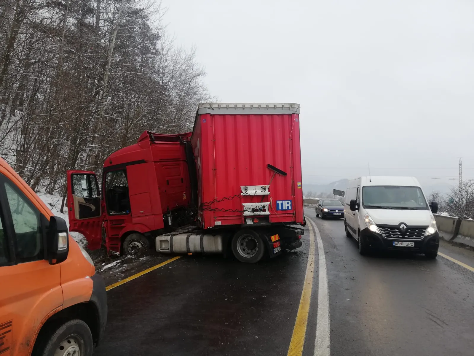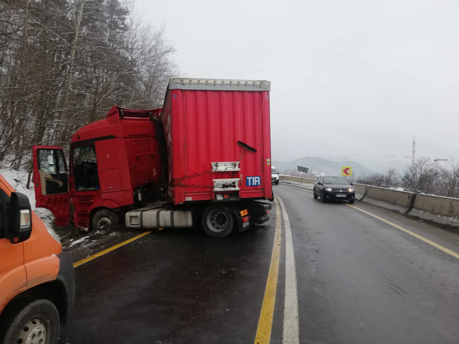 Semiremorca blochează banda destinata direcției Valcea - Sibiu. Traficul desfasurandu-se alternativ, dirijat de politistii rutieri.
