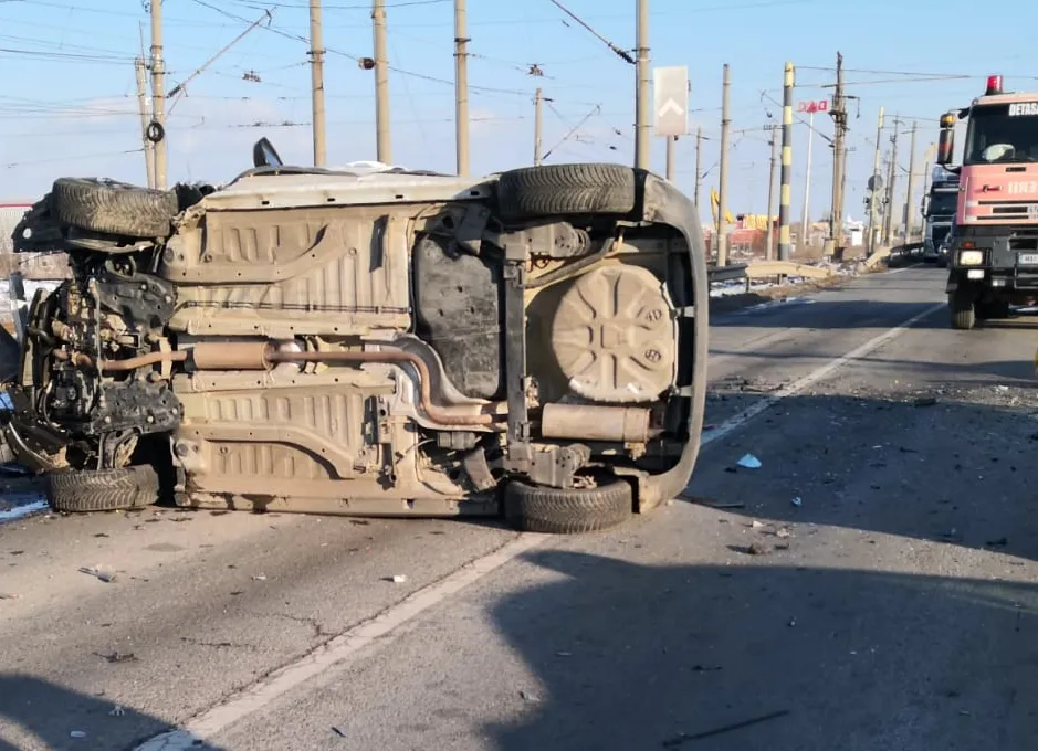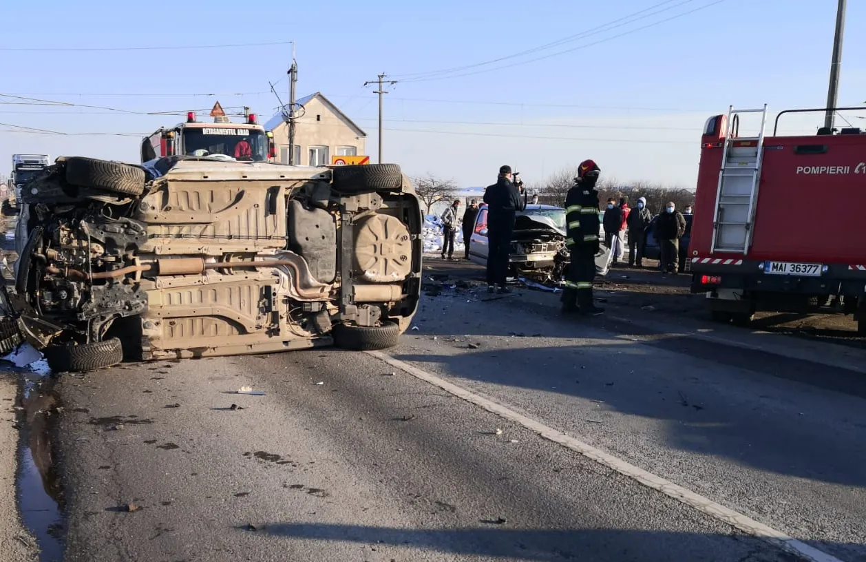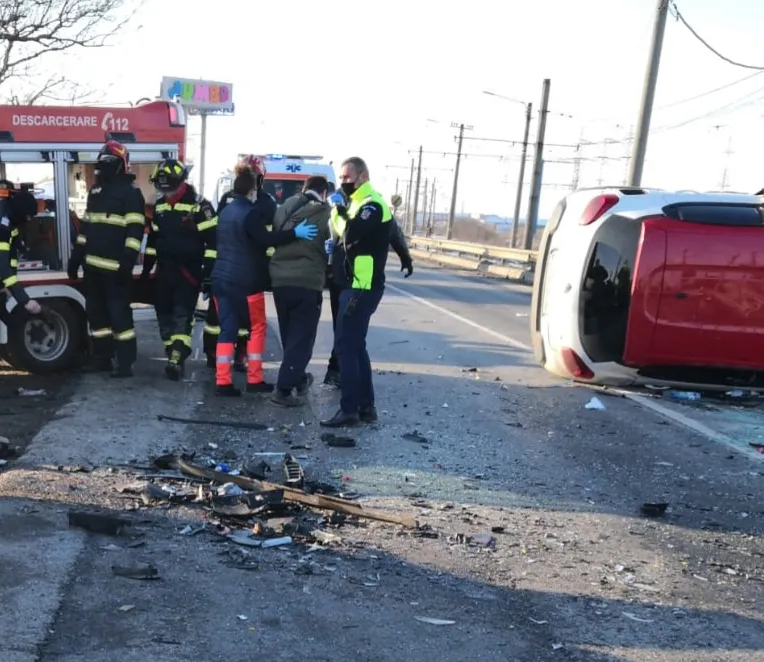 Accident mortal la Arad. O mașină s-a răsturnat în urma impactului - FOTO