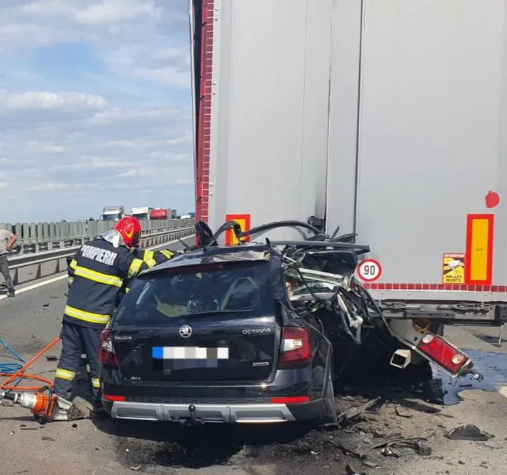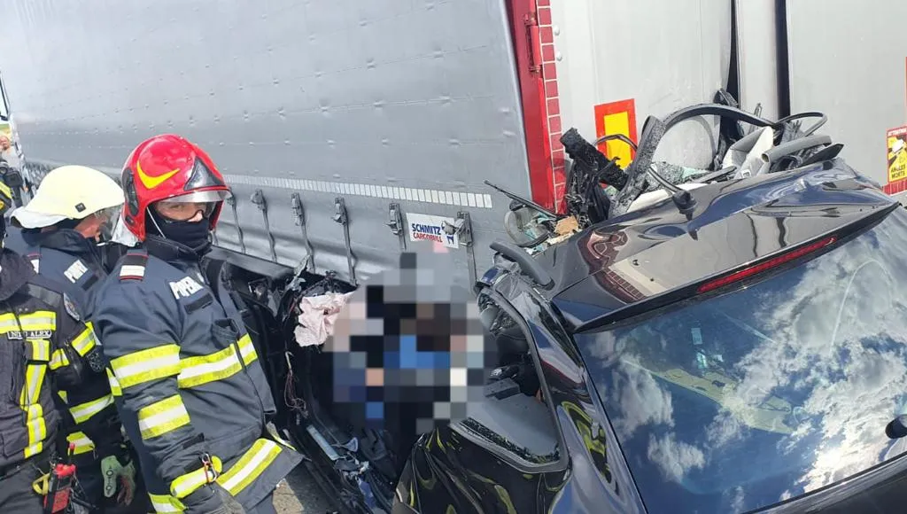 ”Un autocamion a lovit autoturism, iar o persoană a murit. În momentul sosirii echipajelor de intervenție a fost găsită o victimă încarcerată li decedată în autoturism”, a precizat biroul de presă Arad.