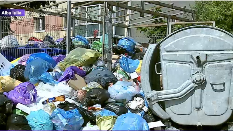 În Alba Iulia, oamenii sunt nevoiți să se plimbe printre gunoaie din cauza resturilor menajere care nu au mai fost ridicate de câteva zile. Sunt deșeuri aruncate la voia întâmplării lângă ghenă, iar localnicii stau cu ferestrele închise, pentru a nu intra și în case mirosul de gunoi.