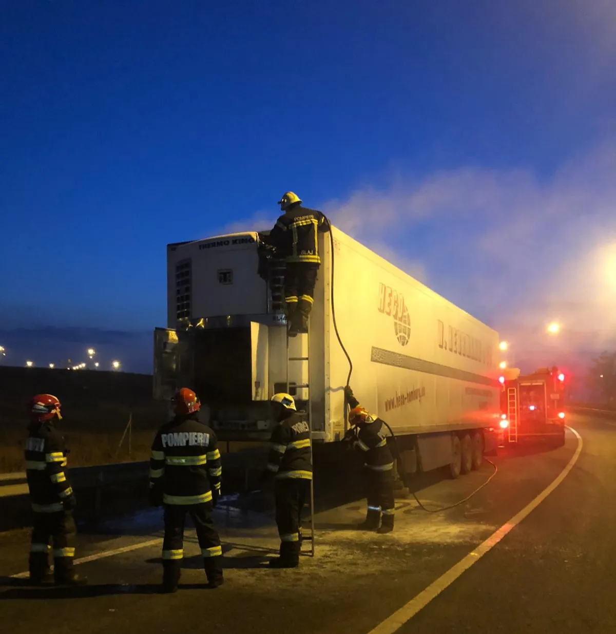 Arad: Incendiu la o remorcă frigorifică a unui TIR