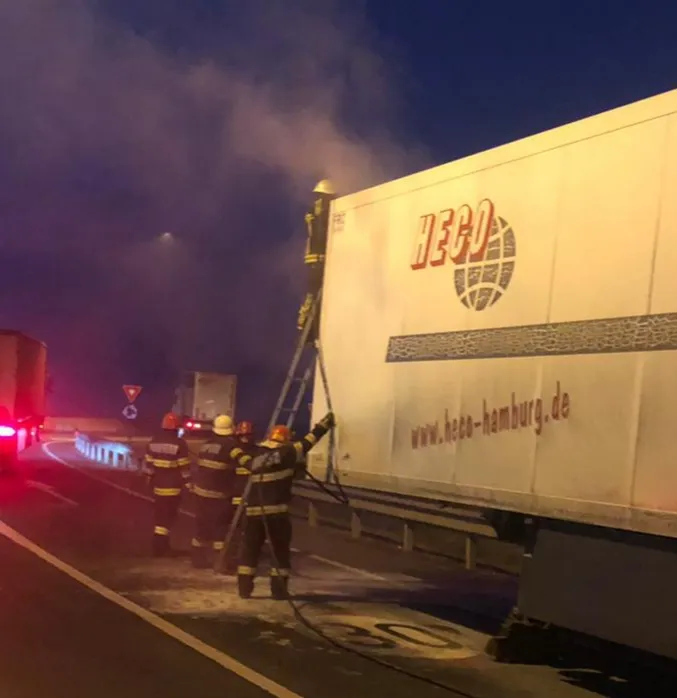 Șoferul a reușit să decupleze capul tractor de la remorca. Incendiul a fost stins în aproximativ 20 de minute.