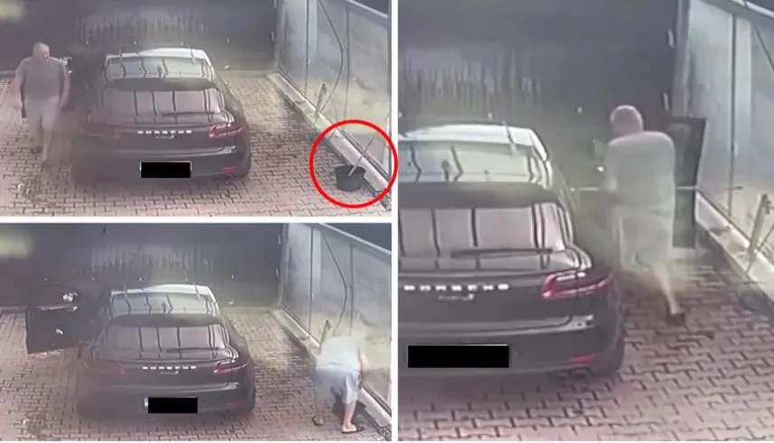 Așa rău au ajuns bogații din Ardeal? Șoferul unui Porsche a luat găleata și peria de la o spălătorie auto cu fise - VIDEO