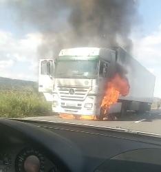 Un autocamion a luat foc în timp ce se deplasa între localitățile Aiud și Alba Iulia, în jurul orei 16:00. Din fericire, șoferul a reușit să iasă din mașină și a așteptat ajutoare.
