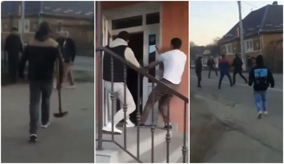Bătaia cu pari și lopeți a continuat și pe străzile din fața Primăriei. În înregistrarea publicată de presa locală se vede cum mai mulți bărbați se înjură, se aleargă și se lovesc cu pari și lopeți.