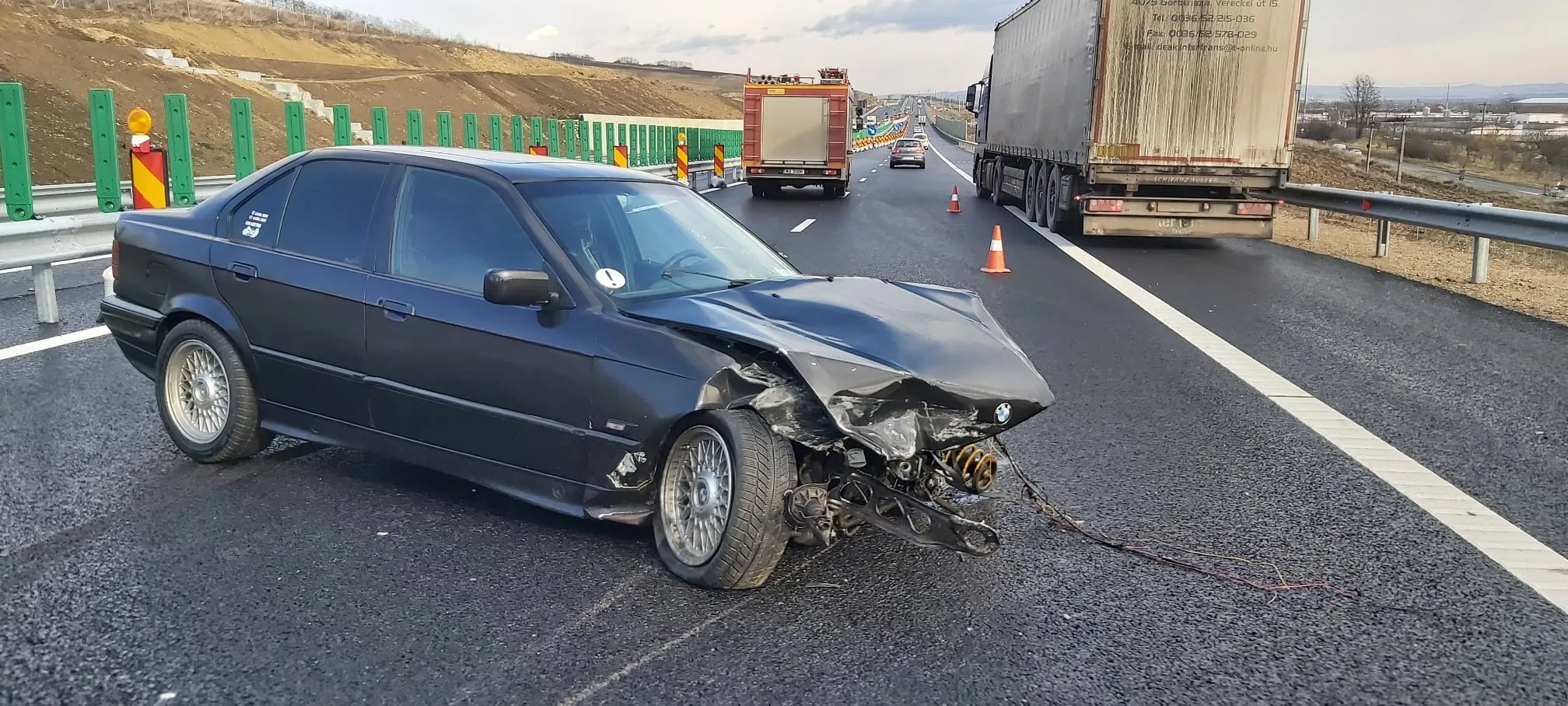 Un BMW a fost implicat într-un accident pe Autostrada A10, pe sensul Alba Iulia - Aiud.