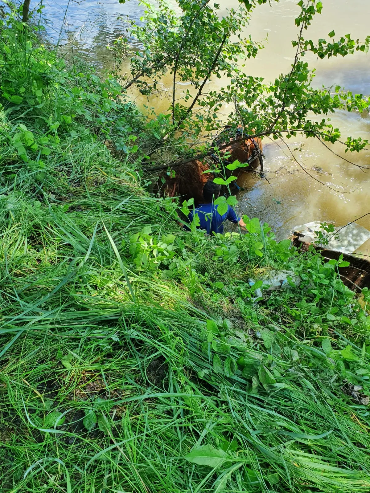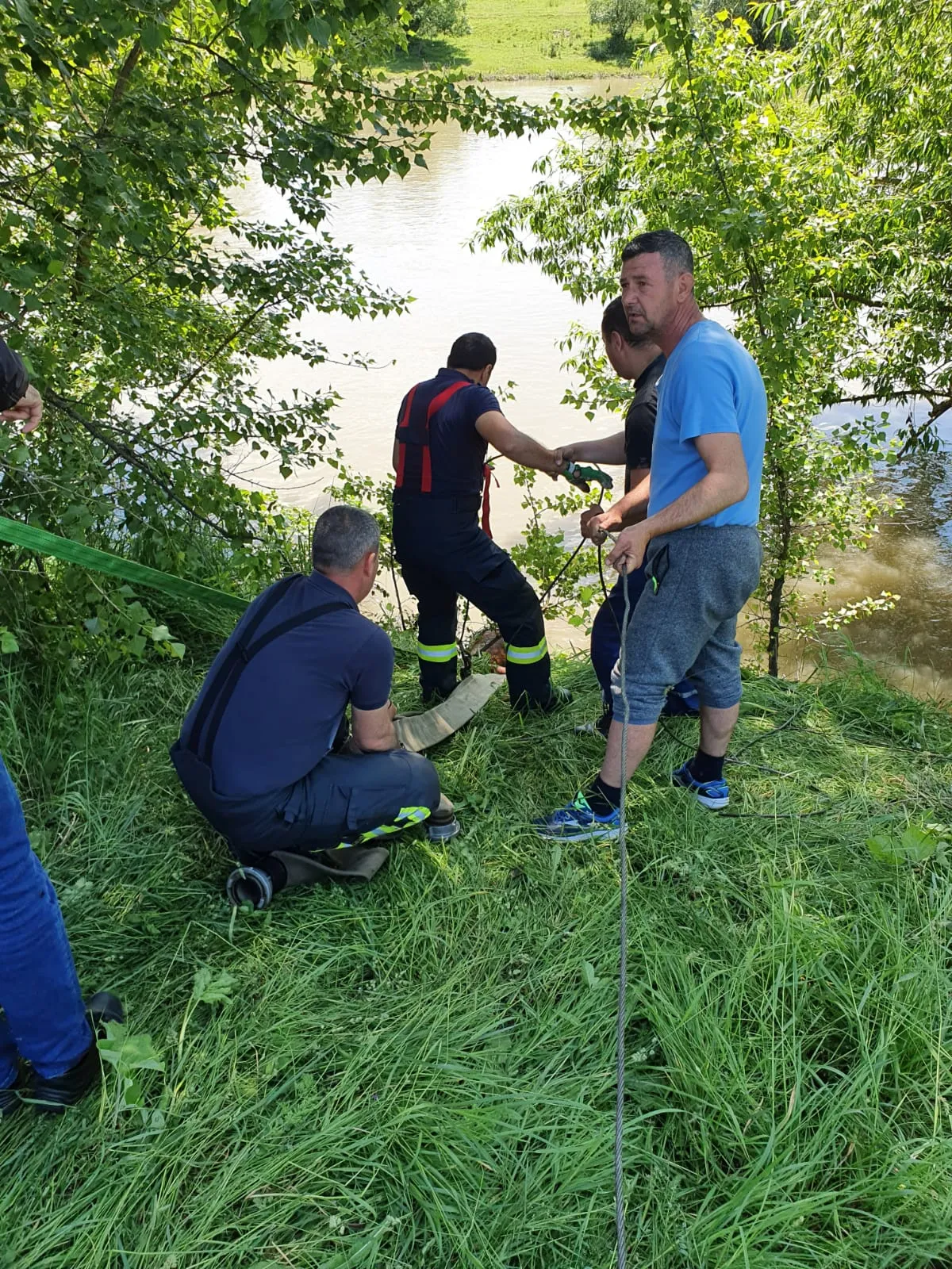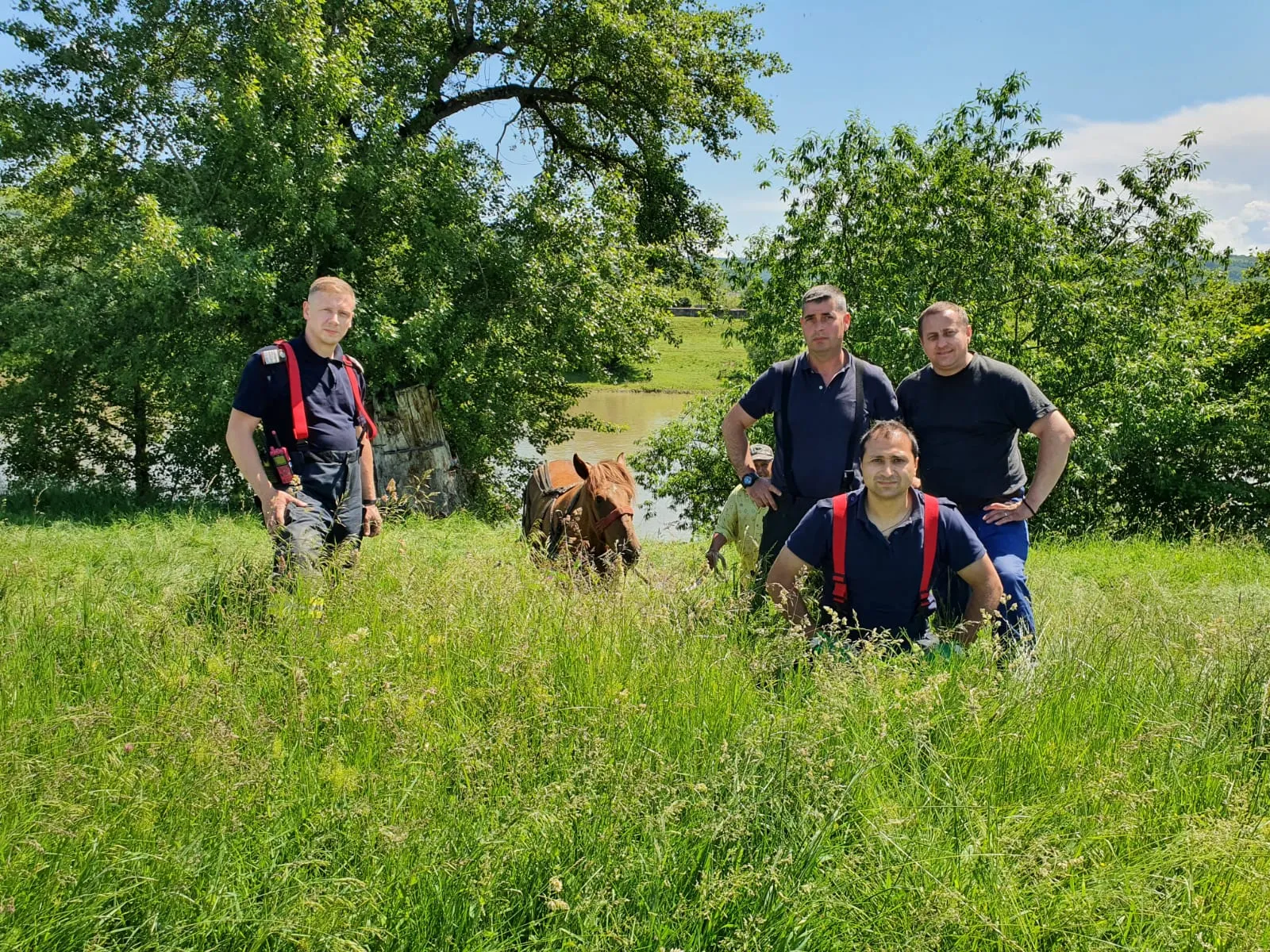 Un cal a fost salvat de la înec de pompierii din Aiud, în cooperare cu SVSU Ocna Mureș.