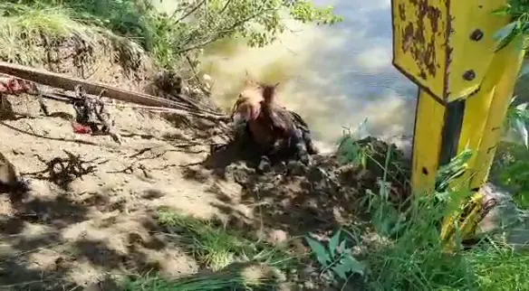 Cal epuizat, salvat din Mureș de pompieri. Animalul era la capătul puterilor - VIDEO