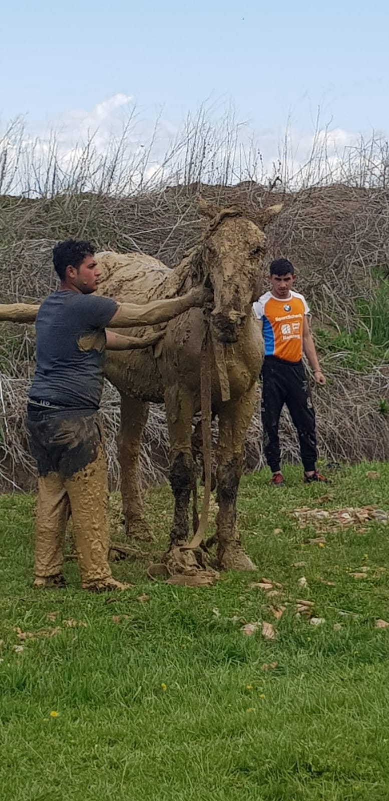 Cal salvat dintr-un canal colector de pompieri! Se blocase în nămol - FOTO