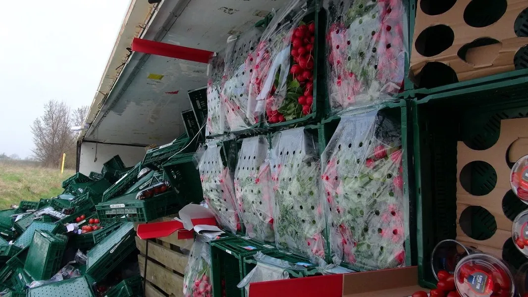 Un camion cu legume s=a răsturnat la Covasna, pe sensul de mers Brașov - Târgu Secuiesc.
