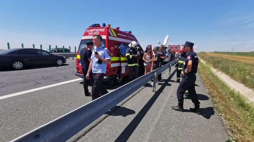 Traficul rutier este blocat pe ambele sensuri în urma accidentului, iar trei oameni au fost răniţi.