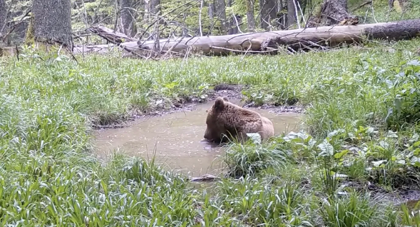 Spre exemplu, un urs brun a fost surprins de o cameră de monotorizare a faunei amplasată de Administrația Parcului Național Retezat în timp ce a ieșit la scăldat în „piscina” din pădure.