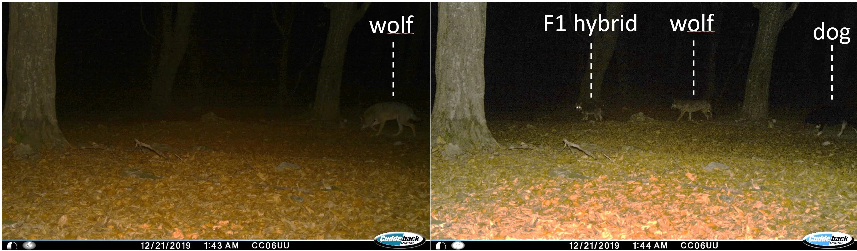 Studiul confirmă prezența unui hibrid lup-câine, acesta fiind prima confirmare genetică oficială în Munții Carpați. Deși hibridizarea pare a fi o amenințare nesemnificativă la acest moment, ea poate evolua și poate conduce în timp la o degradare genetică urmată de o extincție totală a acestei specii. În cazul României, hibridizarea este un fenomen cauzat de câinii hoinari care au apărut în habitatul lupilor. Prezența lor pune în pericol sănătatea genetică a populației de lupi pentru următoarele decenii. La 3 detecții ale lupilor pe camerele de monitorizare, în habitatul forestier, apare și o detecție a câinilor fără stăpân. Pentru a evalua acest fenomen cercetătorii Fundației Conservation Carpathia au colectat probe de salivă de la 21 de câini din zona cercetată, concomitent cu perioada în care au fost colectate și probele ADN lăsate în urmă de lupi.
