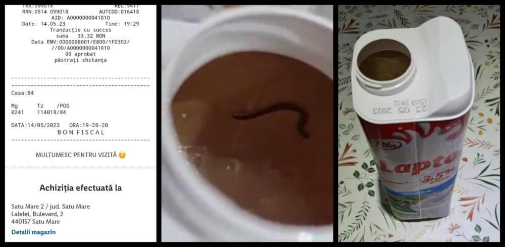 Bărbatul a cumpărat o cutie de lapte dintr-un supermarket din municipiul Satu Mare, iar după ce l-a deschis a observat o râmă în interior.