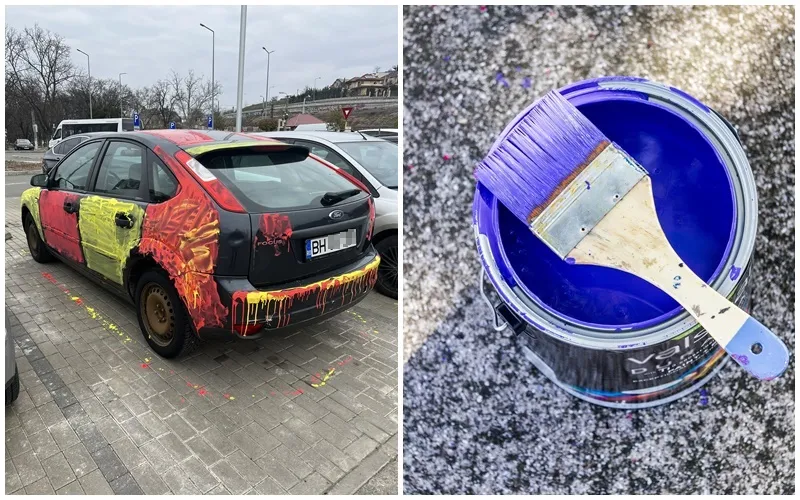 Cel care a vandalizat mașina ar putea fi depistat numai dacă sunt camere de supraveghere în zonă. Autorul a avut ceva de lucru, mai ales că sunt vopsite mai multe componente ale mașinii, fără a fi atinse geamurile.