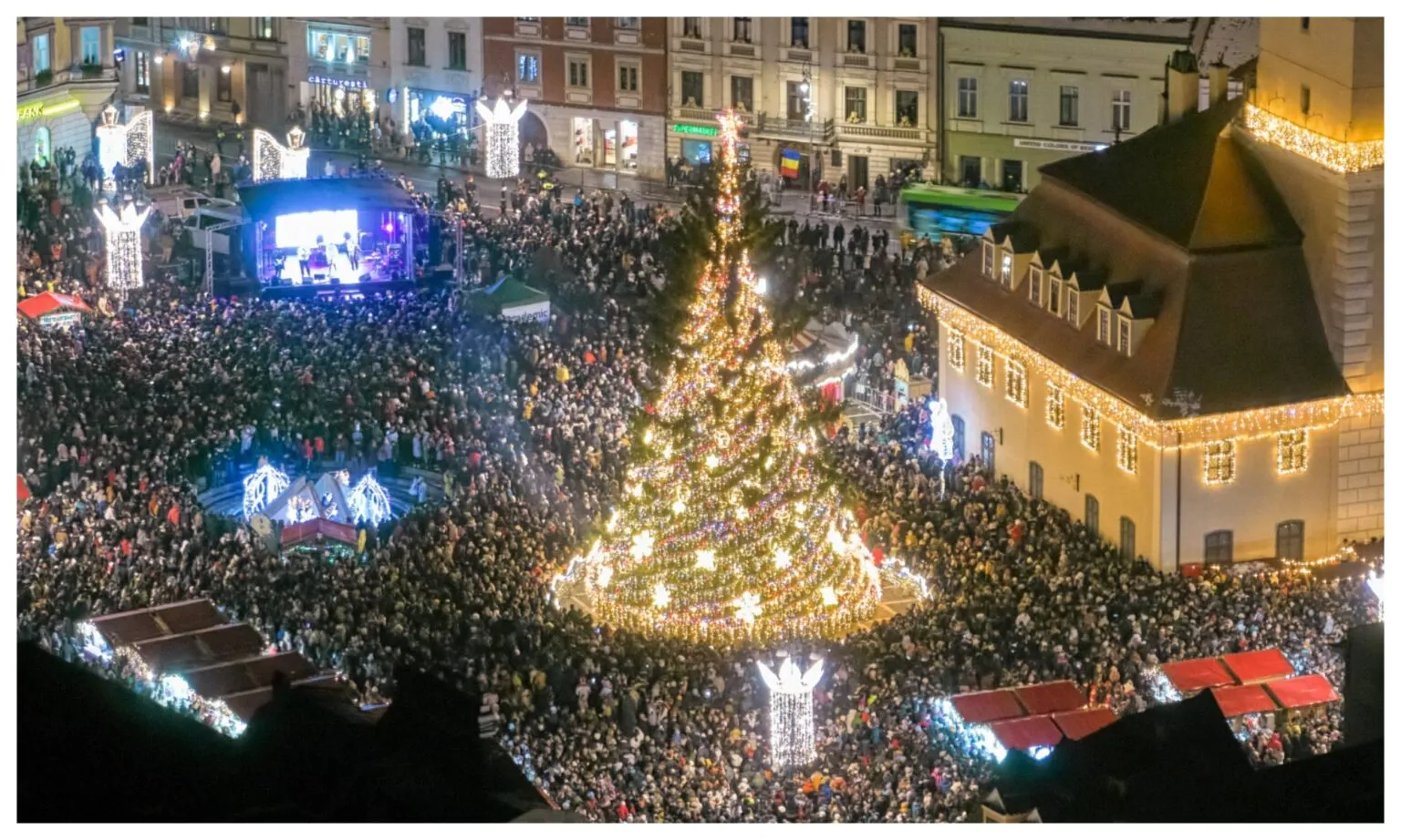 La Cluj-Napoca, bradul de Crăciun, înalt de 20 de metri, a fost instalat în Piața Unirii în urmă cu câteva zile, marcând începutul pregătirilor pentru Târgul de Crăciun din centrul orașului. Generosul brad a fost donat și va străluci sub luminile festive alături de decorațiunile specifice, creând o atmosferă de basm pentru vizitatori.