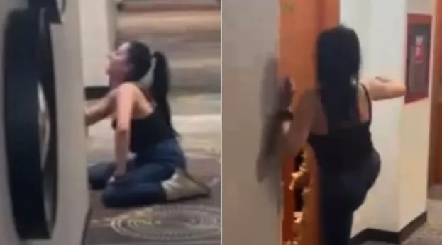 Clip viral pe TikTok, după ce o tânără cu alcoolemie record a fost filmată când distruge o uşă, într-un hotel din Sibiu
