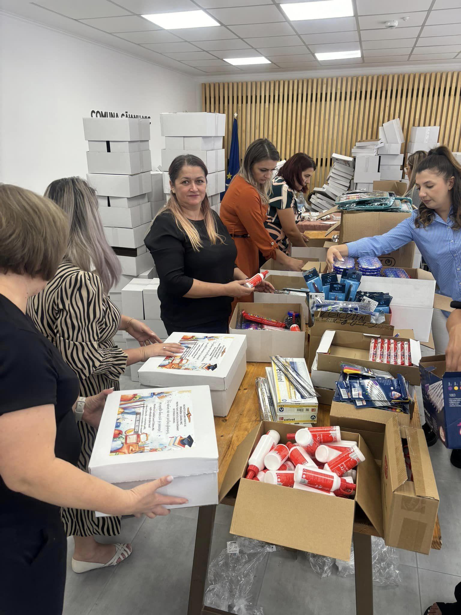 Astfel, aproape 500 de copii, începând de la cei mai mici înscriși la creșă și grădiniță și până la cei mai mari de clasa a VIII-a, vor beneficia de câte un set de rechizite care va asigura o parte importantă din necesarul pentru începerea și parcurgerea anului școlar!”, a declarat primarul comunei Paul Știr.