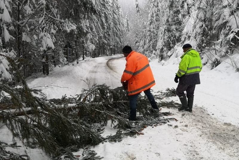 Copaci căzuți pe carosabil, pe drumuri din Apuseni. Au intervenit echipaje CNAIR - FOTO