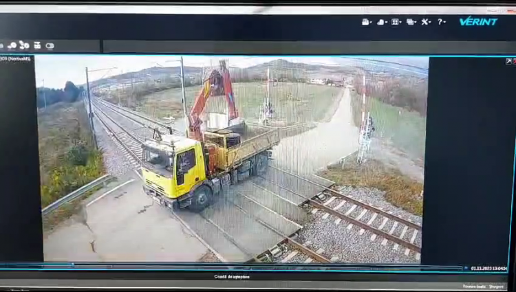”Un utilaj hidrauluic a rupt ambele fire de contact de la trecerea la nivel cu calea ferată situată în MEDIAȘ, la km 330+309, liniile de contact având rolul de a asigur alimentarea cu energie electrică a trenurilor, pe intervalul DUMBRĂVENI - MEDIAȘ!