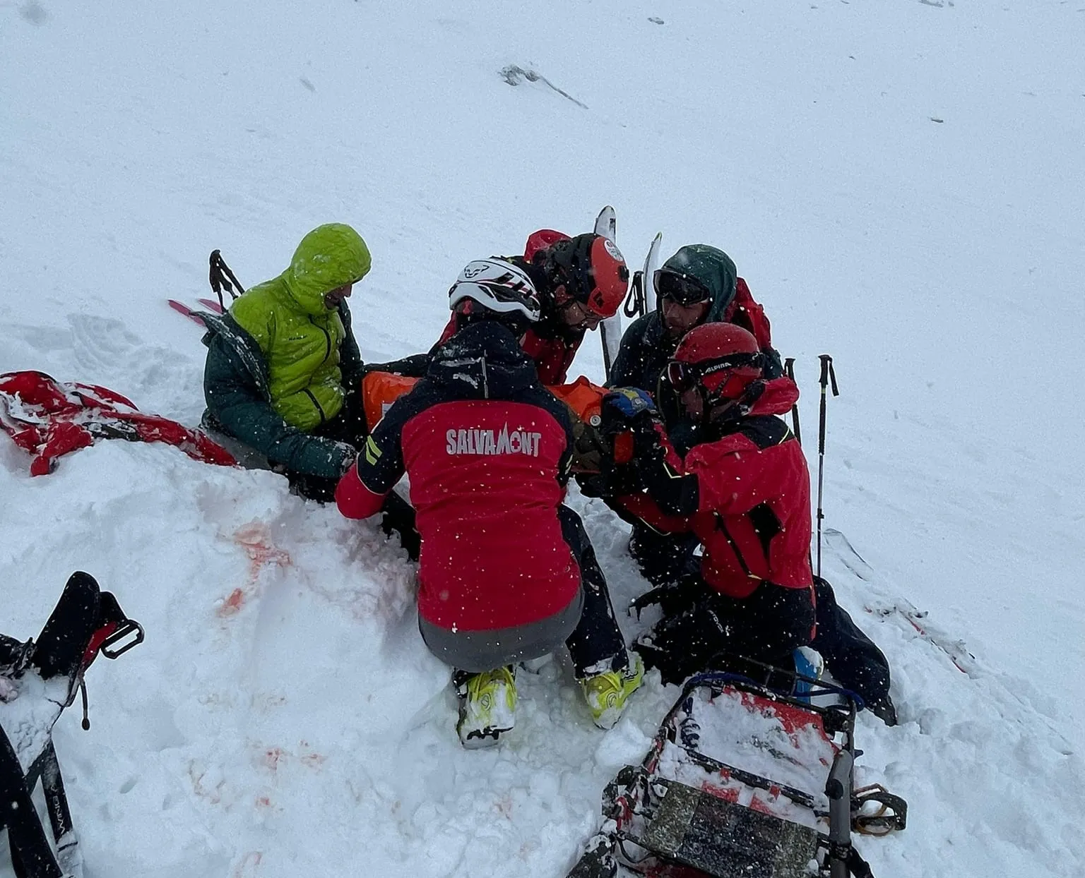 Bărbatul, aflat la aproximativ 50 de metri mai sus, a fost parțial acoperit de zăpadă. El a suferit o fractură la gleznă și o plagă tăiată la membrul stâng.