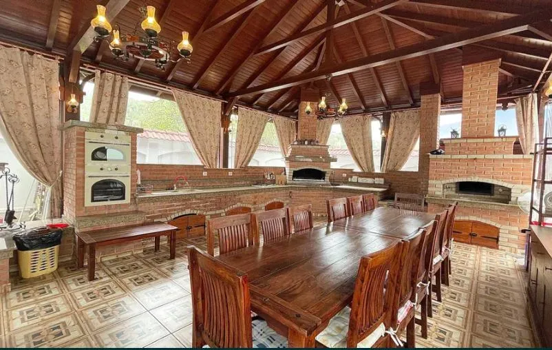 - Proprietatea dispune inclusiv de două garaje spațioase și un foișor dotat cu zonă BBQ, cuptoare, semineu, plită electrică și lavoar.