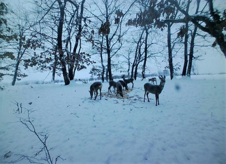 Regia Națională a Pădurilor- Romsilva a publicat astăzi, 7 februarie, o serie de imagini preluate de la Ocolul Silvic Beclean din cadrul Direcției Silvice Bistrița-Năsăud, cu un grup de căprioare, mistreți și fazani adunați la unul dintre punctele de hrănire special amenajate pentru animalele sălbatice din zonă.