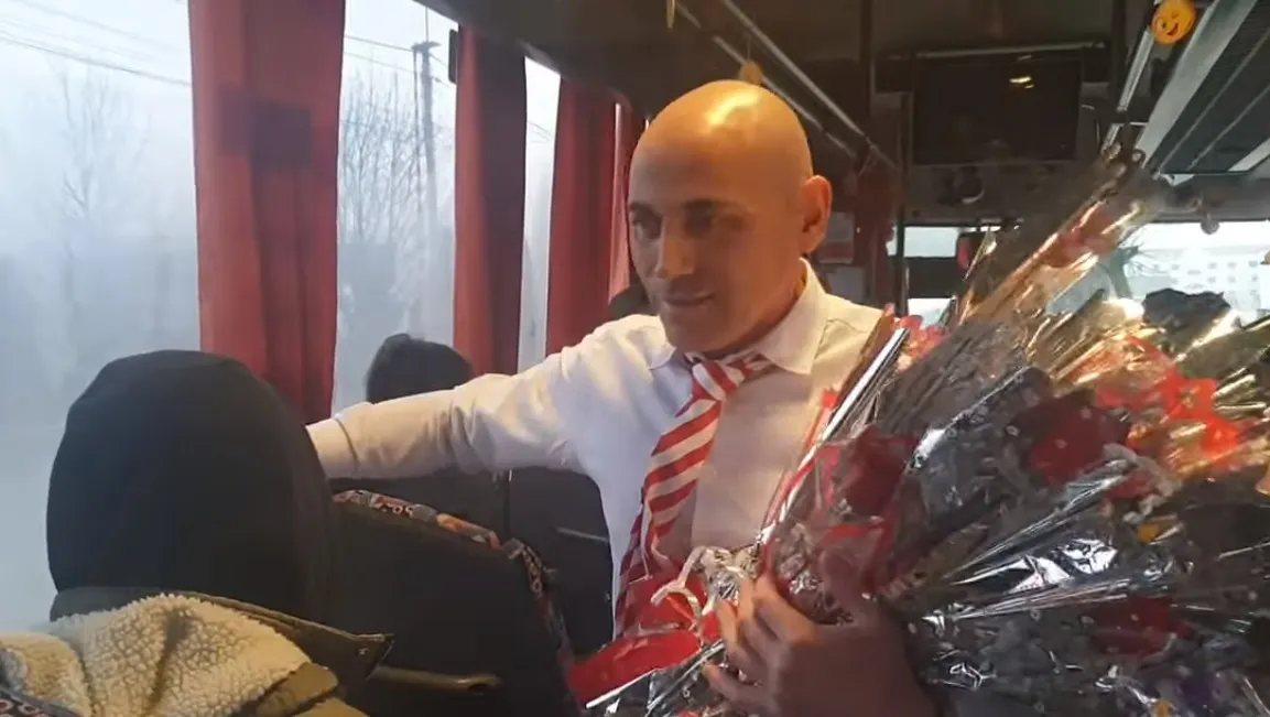 Gestul unui șofer către doamnele din autobuz! Le-a dat la toate flori și le-a urat ”la mulți ani” de ziua femeii - VIDEO