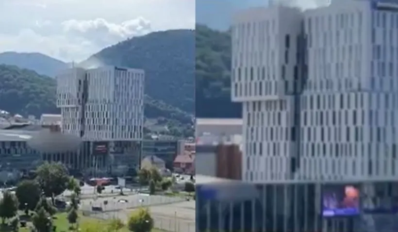 Este incendiu la cel mai mare mall din Brașov, la etajul opt. Deasupra clădirii se ridică acum o coloană de fum.