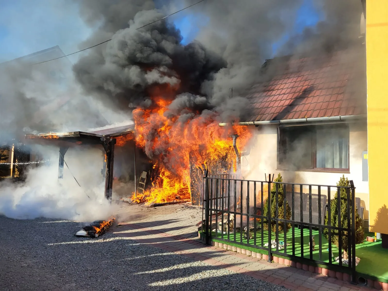 La momentul ajungerii forțelor de intervenție la locul incendiului, focul se manifesta cu flacăra vizibilă și degajare mare de fum.