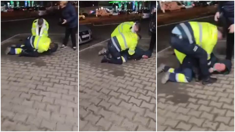 Polițiștii din Alba-Iulia l-au scos cu forța pe un bărbat de 56 de ani dintr-un supermarket, pentru că acesta nu purta mască de protecție. În imagini se observă cum unul dintre polițiștii locali se urcă pe bărbatul pus la pământ, în timp ce altul îl încătușează.