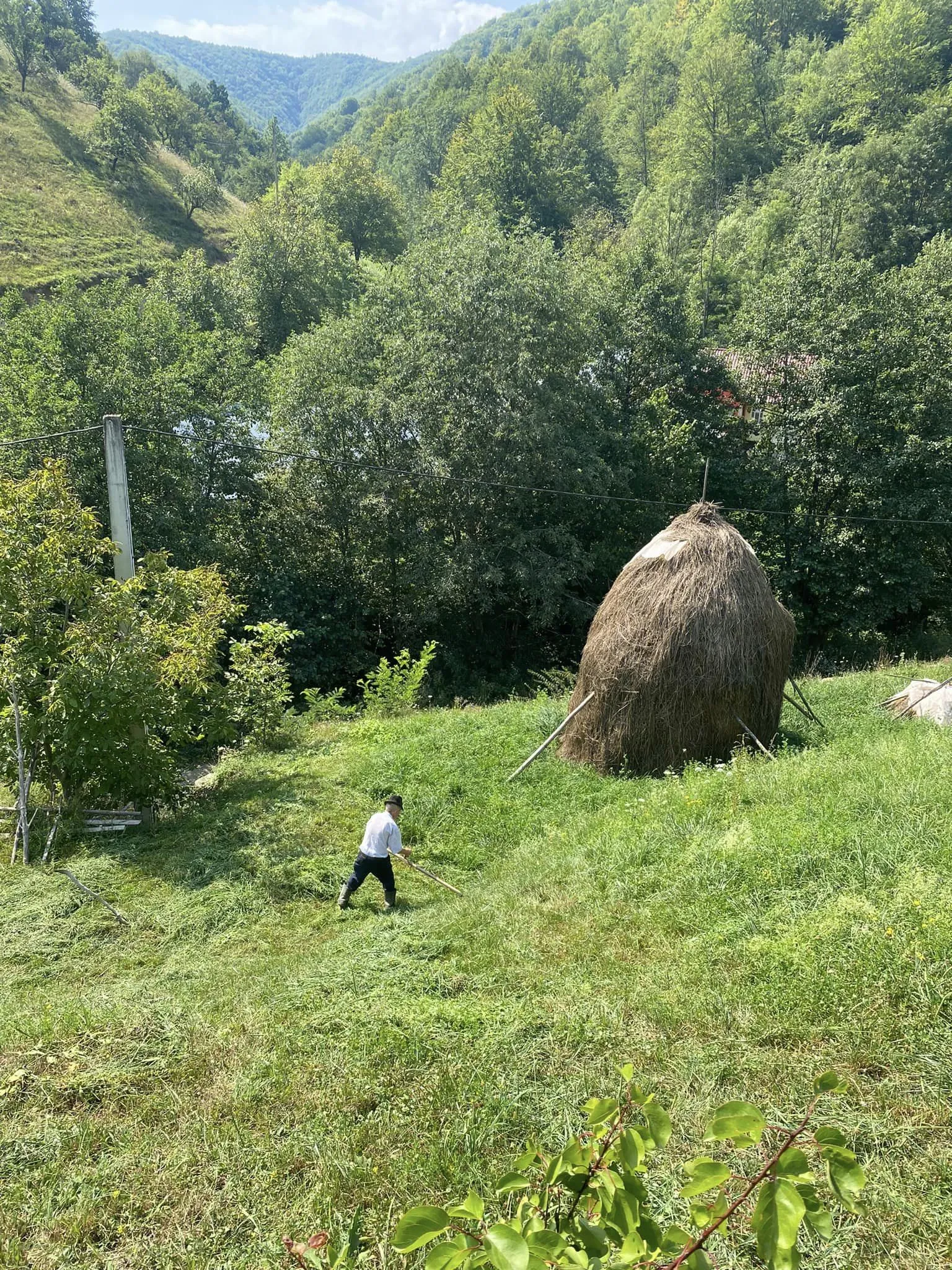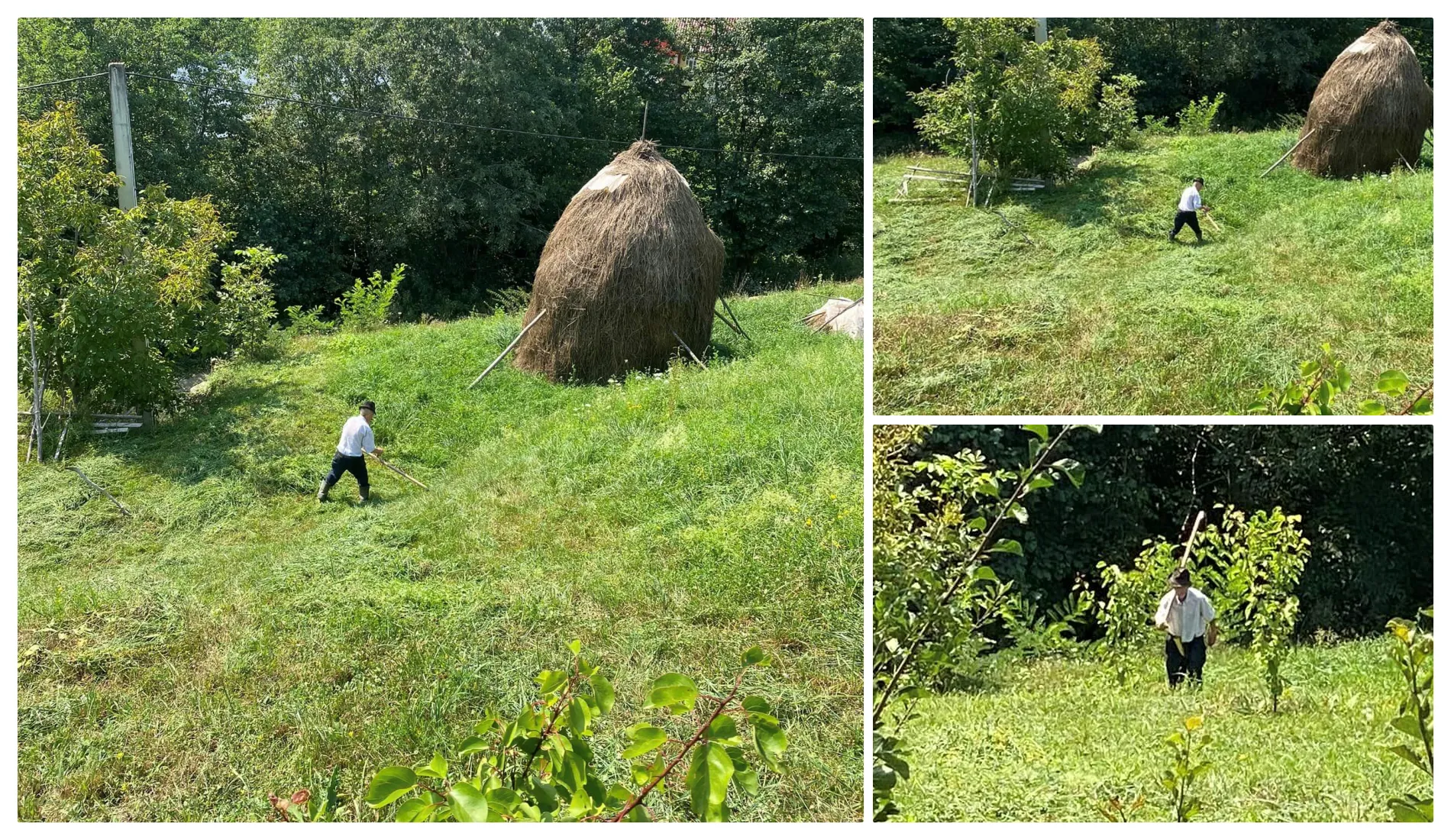 Pe badea Vasile Scurtu, de 84 de ani, l-am întâlnit în grădina casei sale din Rebra, făcând ce ştie el mai bine: muncind. Cosea pe o coastă atât de abruptă, că abia puteai să cobori şi când te uitai, din depărtare, nu îţi venea să crezi că se poate munci pe acel deal. Mai ales că dumnealui are o vârstă atât de frumoasă.