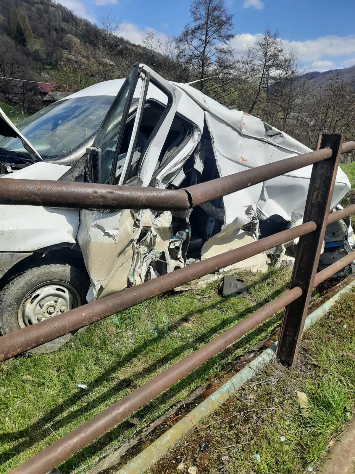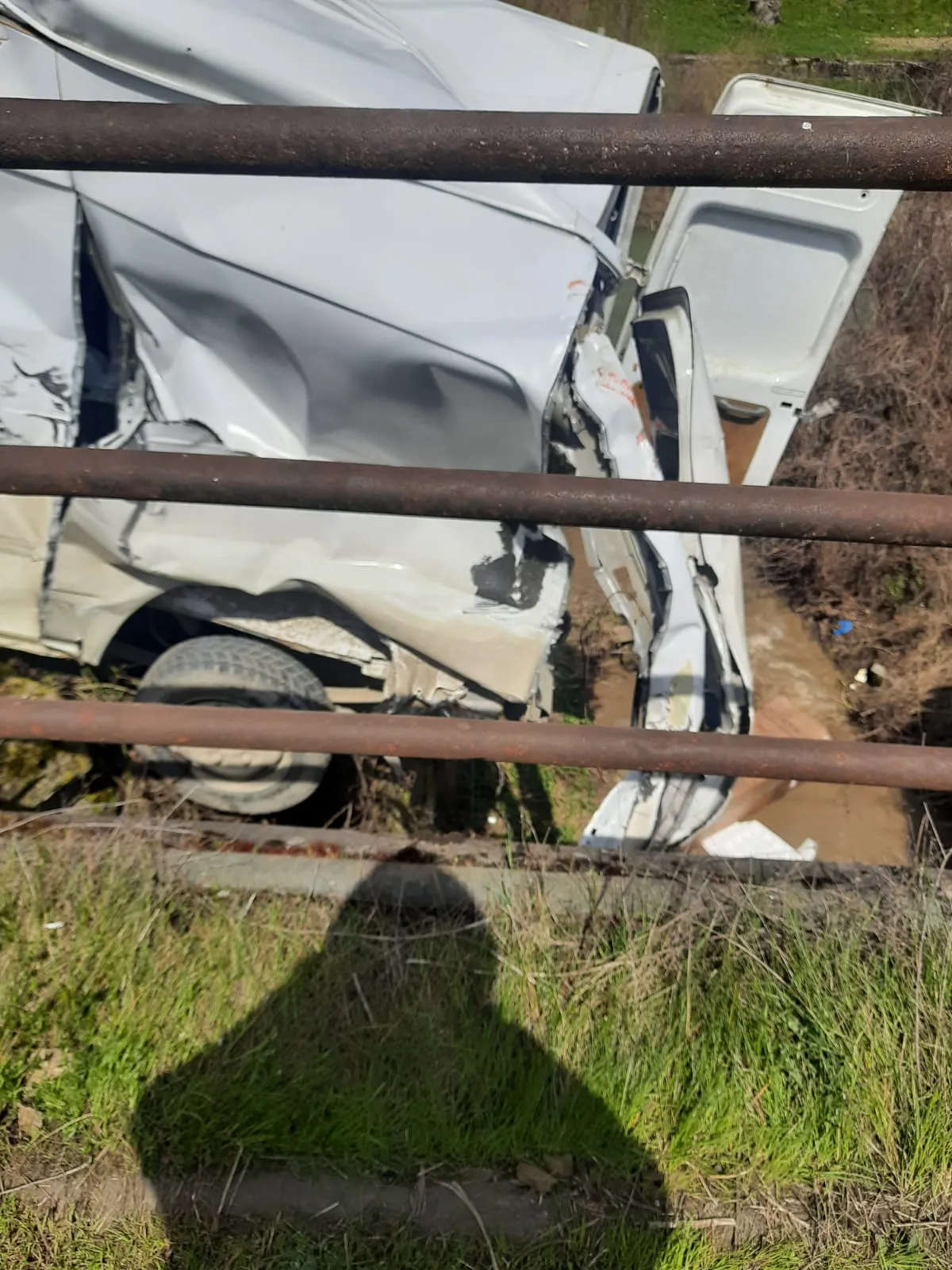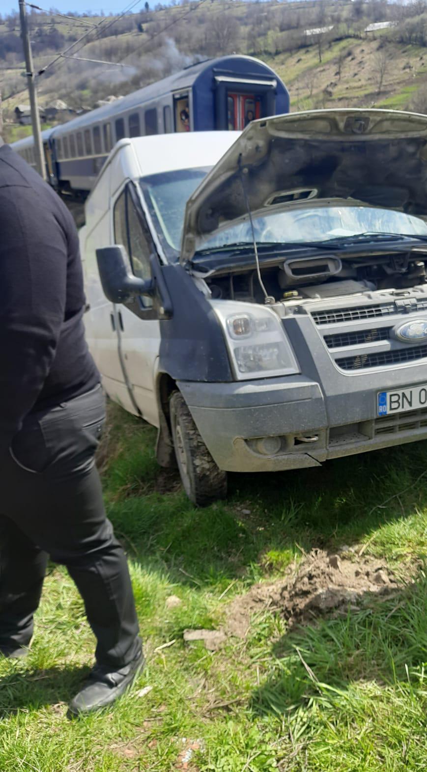 Mașină lovită de tren. Autoturismul a rămas suspendat deasupra unei râpe - FOTO