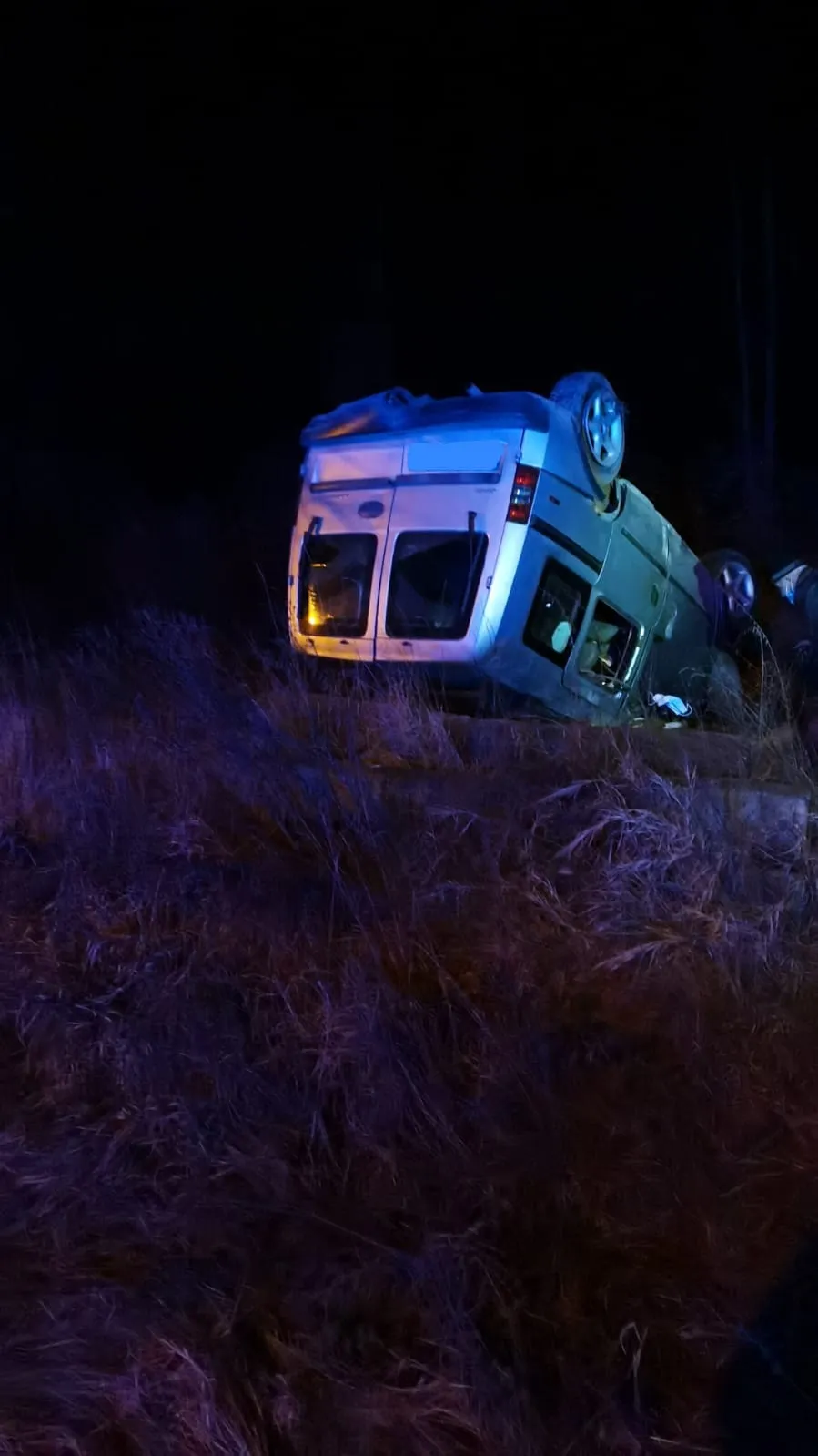 Este vorba despre un accident rutier, un autoturism răsturnat.