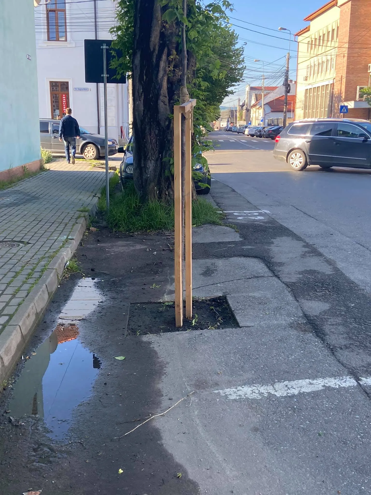 Muncitorii tocmiți de municipalitate au spart asfaltul și au plantat copaci, în centrul orașului, respectiv Piaţa Iuliu Maniu – strada Teilor.