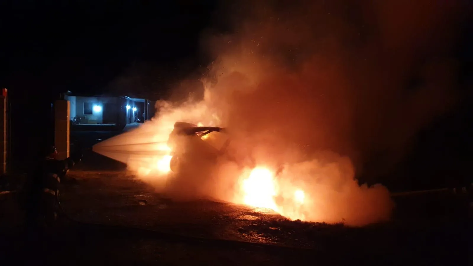 O mașină a luat foc azi-noapte. Pompierii din Satu Mare au intervenit, dar nu au mai putut face mare lucru - VIDEO