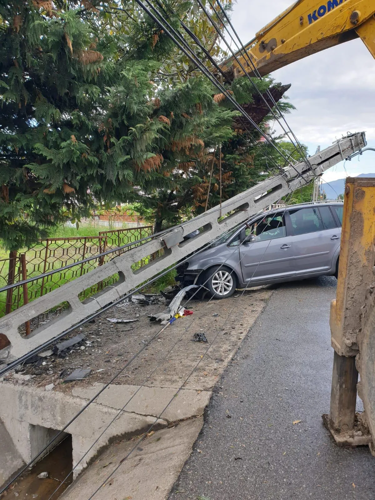 O șoferiță din Baia Mare a rupt un stâlp - FOTO