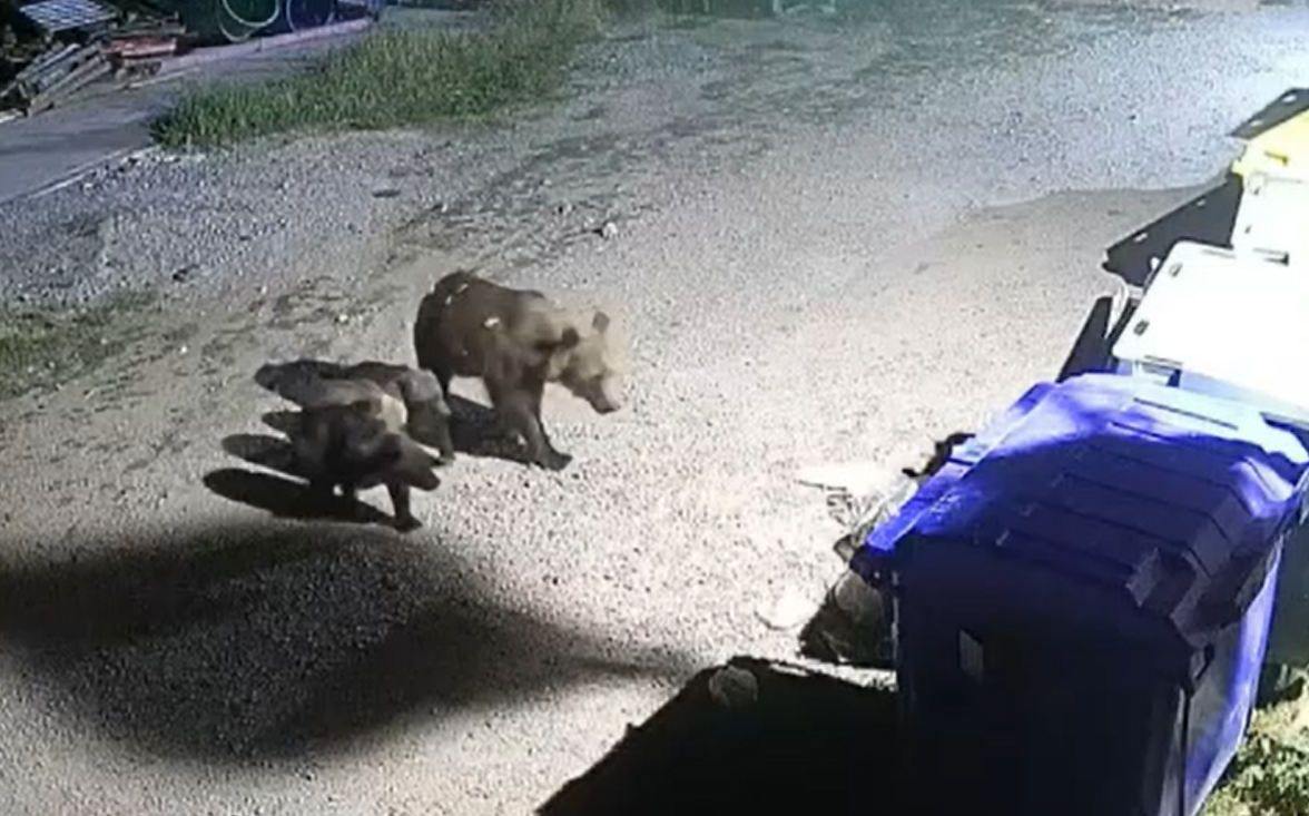 O ursoaică și trei pui au fost surprinși în timp ce se plimbau prin grădina zoologică din Târgu Mureș. Animalele sălbatice au rupt încuietoarea unor tomberoane, în căutarea de mâncare.