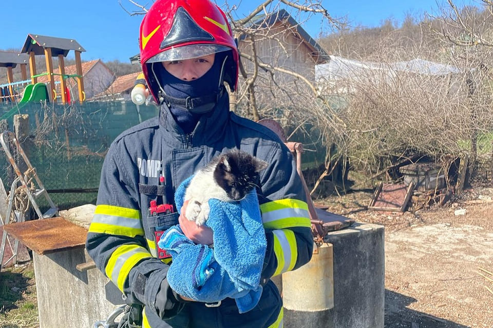 Pisicuță salvată de pompieri! A rămas blocată într-o fântână de trei metri / S-a întors teafără în brațele proprietarilor
